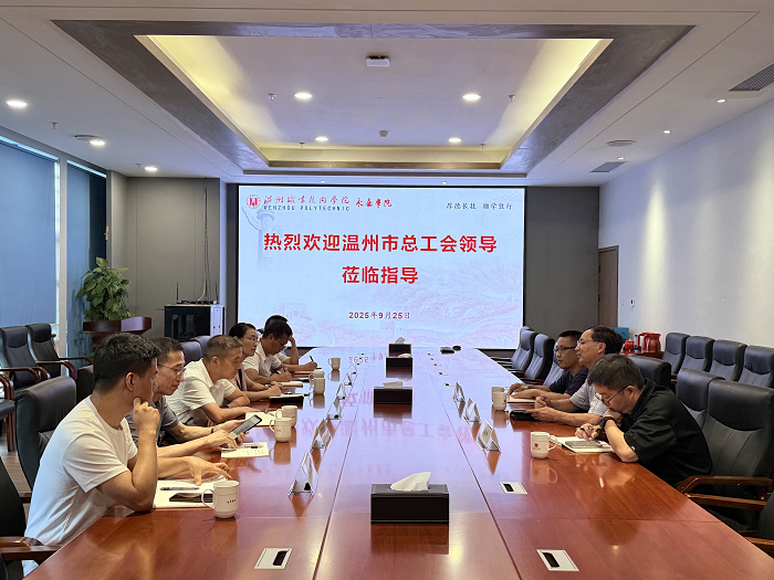 本网讯(通讯员 陈煜)9月25日,温州市总工会党组成员吴客竹一行来永嘉学院专题调研申报“浙江省工匠学院”工作准备情况,并考察温州市劳模工匠泵阀产业人才学院建设进展。永嘉学院副院长董金新、永嘉县总工会副主席陈文聪等陪同调研。