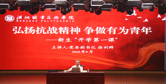 本网迅(通讯员 尹鑫)9月25日下午,校党委副书记徐利群以《弘扬抗战精神 争做有为青年》为题,为永嘉学院260余名新生讲授“开学第一课”,引导新生在百年变局中坚定理想信念,传承红色基因,勇担时代使命。