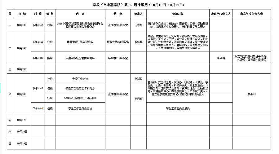 永嘉学院第6周行事历(10月13日-10月19日)