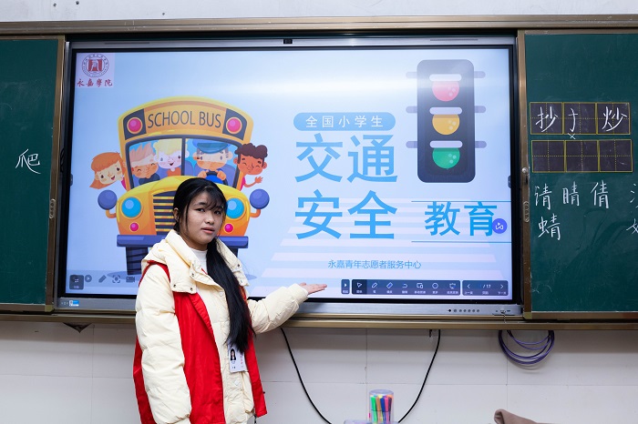 本网讯(通讯员 吴帅)为增强小学生交通安全意识,筑牢校园安全防线,12月3日,永嘉学院志愿者团队走进沙头小学,开展“交通安全,文明出行”主题公益宣讲活动。